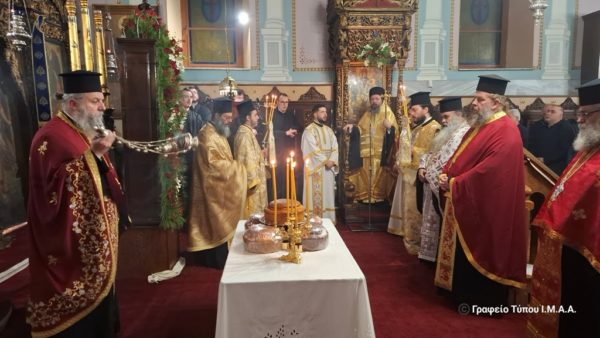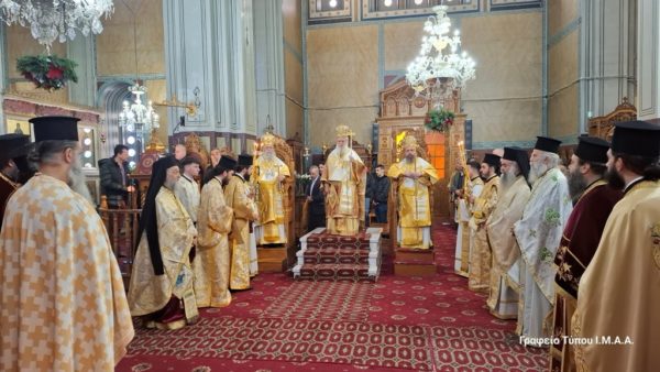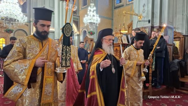 Στην Ιερά Πόλη του Μεσολογγίου, στον πανηγυρίζοντα Ιερό Μητροπολιτικό Ναό του Αγίου Σπυρίδωνος, τελέσθηκε η ακολουθία του Εσπερινού, στον οποίο χοροστάτησε, προσκεκλημένος του Ποιμενάρχου κ. Δαμασκηνού, ο Σεβασμιώτατος Μητροπολίτης Δράμας κ. Δωρόθεος, ο οποίος κήρυξε τον θείο λόγο. Συμμετείχαν το σύνολο του ιερού κλήρου της περιοχής, με επικεφαλής τον Πρωτοσύγκελλο, Αρχιμ. Θεόκλητο Ράπτη.