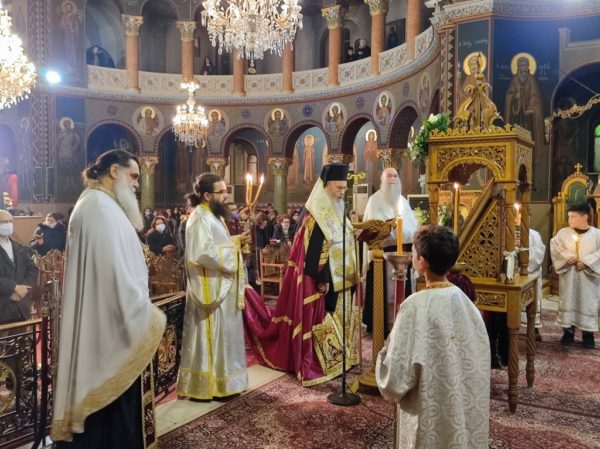 Στην ακολουθία της Β’ Στάσης των Χαιρετισμών προς την Υπεραγία Θεοτόκο που τελέσθηκε χθες, Παρασκευή 18 Μαρτίου 2022, στον Ιερό Ναό Αγίου Δημητρίου Αγρινίου χοροστάτησε ο Σεβασμιώτατος Τοποτηρητής Μητροπολίτης Ναυπάκτου και Αγίου Βλασίου κ. Ιερόθεος.