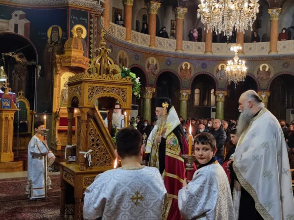 Στην ακολουθία της Β’ Στάσης των Χαιρετισμών προς την Υπεραγία Θεοτόκο που τελέσθηκε χθες, Παρασκευή 18 Μαρτίου 2022, στον Ιερό Ναό Αγίου Δημητρίου Αγρινίου χοροστάτησε ο Σεβασμιώτατος Τοποτηρητής Μητροπολίτης Ναυπάκτου και Αγίου Βλασίου κ. Ιερόθεος.