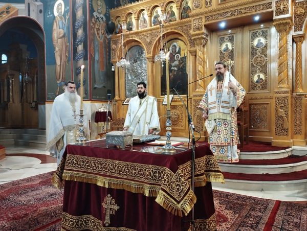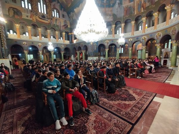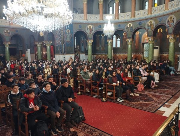 Κατά την διάρκεια της Θείας Λειτουργίας που τελέστηκε στον σολέα του Ναού, ο Σεβασμιώτατος επεξηγούσε τα τελούμενα και ανέλυσε τα βασικά σημεία και τους συμβολισμούς της Θείας Λειτουργίας για να μπορούν οι μαθητές να κατανοούν καλύτερα και να συμμετέχουν στο Μυστήριο.