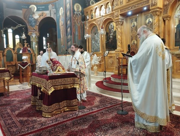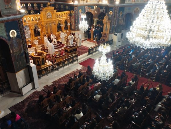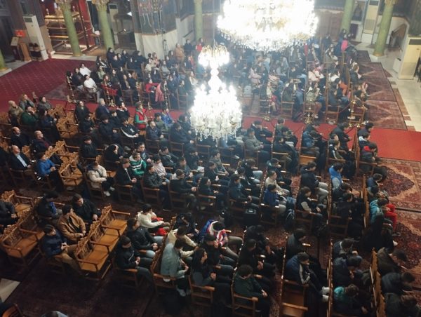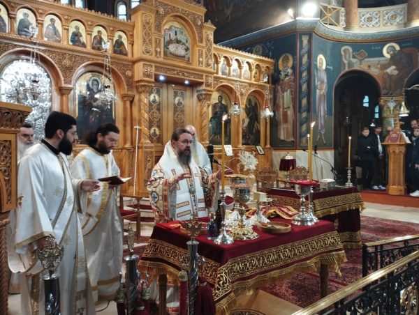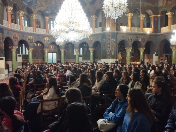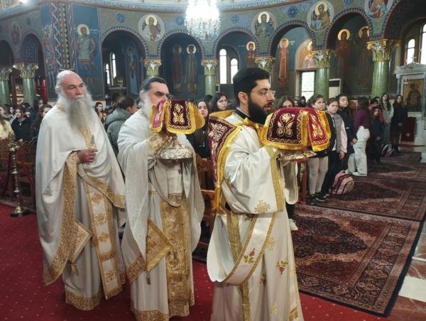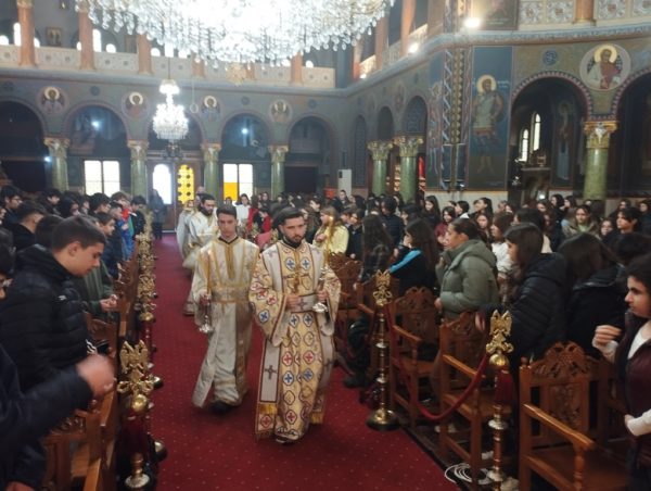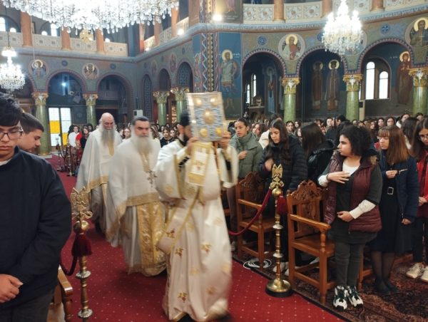 Κατά την διάρκεια της Θείας Λειτουργίας που τελέστηκε στον σολέα του Ναού, ο Σεβασμιώτατος επεξηγούσε τα τελούμενα και ανέλυσε τα βασικά σημεία και τους συμβολισμούς της Θείας Λειτουργίας για να μπορούν οι μαθητές να κατανοούν καλύτερα και να συμμετέχουν στο Μυστήριο.