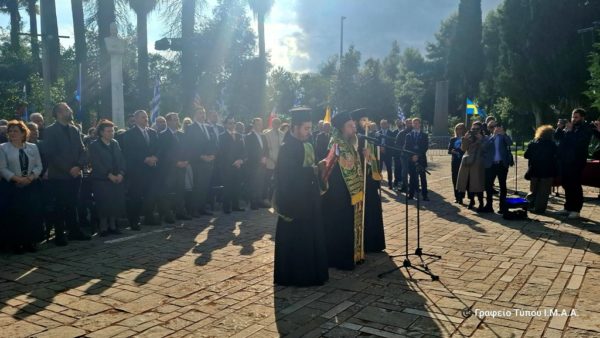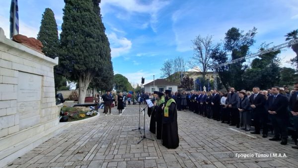 Ακολούθησε επιμνημόσυνη δέηση, προεξάρχοντος του Σεβασμιωτάτου Ποιμενάρχου κ. Δαμασκηνού και κατόπιν στον Τύμβο, όπου φυλάσσονται τα οστά των Εξοδιτών κατέθεσαν στεφάνια οι εκπρόσωποι των Τοπικών Αρχών, των Συλλόγων, των Οργανώσεων και των Φορέων.