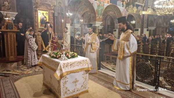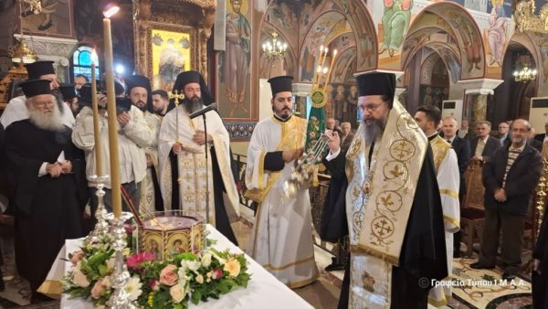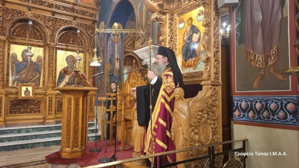 Σας ευχαριστούμε θερμά, διότι μέσα στο βεβαρημένο πρόγραμμά σας εντάξατε και την έλευση σας στην πόλη του Αγρινίου, κομίζοντας την Χαριτόβρυτο Κάρα του Αγίου Γερβασίου. Απολαύσαμε την αρχιερατική χοροστασία σας στην ακολουθία του παρακλητικού κανόνος, λάβαμε την αρχιερατική σας ευλογία και τώρα, είμαστε έτοιμοι, επίσκοπος, ιερός κλήρος και ο ευλογημένος λαός να ωφεληθούμε πνευματικά από τον πάντοτε θεολογικό επισκοπικό σας λόγο, ο οποίος φωτίζει τις ψυχές των πιστών και ταυτόχρονα αποτελεί γνήσια, επίκαιρη και δυναμική έκφραση της Εκκλησίας».