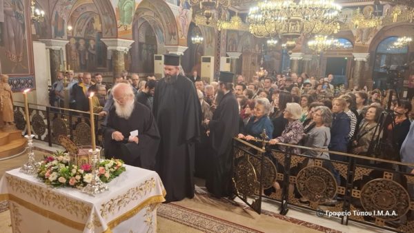 Στη συνέχεια τελέσθηκε η Ιερά Παράκληση του Αγίου Γερβασίου, χοροστατούντος του Μητροπολίτου Πατρών.