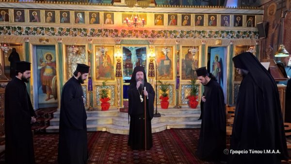 Με τον Σεβασμιώτατο συλλειτούργησαν ο Αρχιμανδρίτης Αμβρόσιος Καλλιάφας, Προϊστάμενος του Ιερού Ναού και ο Πρωτοπρεσβύτερος Δημήτριος Κολοκούρας, ο Αρχιδιάκονος Δημήτριος Λαγούδης και ο Ιεροδιάκονος Βαρθολομαίος Κοσμάς.
