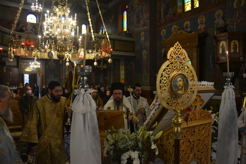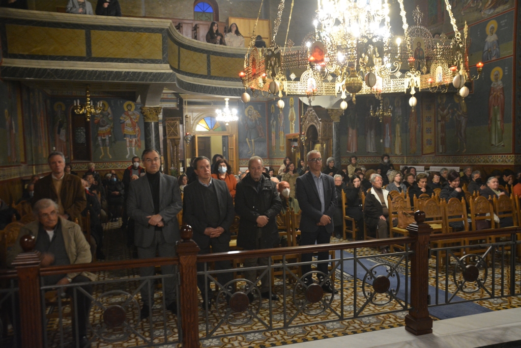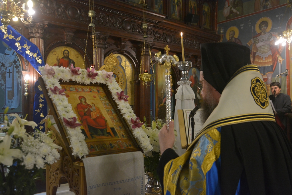 Ο Σεβασμιώτατος έψαλλε την Α’ και Δ’ Στάση των Χαιρετισμών της Θεοτόκου, ενώπιον της ιεράς Εικόνας της, συμπαραστατούμενος από τον Πρωτοσύγκελλο, αρχιμ. Θεόκλητο Ράπτη, ο οποίος έψαλλε την Β’ και Γ’ Στάση των Χαιρετισμών, τον Αρχιδιάκονο π. Στέφανο Καππέ και τους Διακόνους π. Αμβρόσιο Καλλιάφα και π. Δημήτριο Λαγούδη.