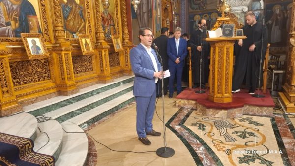 Κατά τον χαιρετισμό του ανέφερε μεταξύ άλλων ότι: «αυτός ο κοινός εορτασμός αποδεικνύει περίτρανα την αγαστή συνεργασία της τοπικής μας Εκκλησίας με τον ιατρικό κόσμο της πόλεως αυτής και καταδεικνύει την εμπιστοσύνη που υπάρχει ανάμεσα στην ποιμαίνουσα Εκκλησία και σε όσους διακονούν το λειτούργημα της θεραπείας των σωματικών ασθενειών των ανθρώπων».