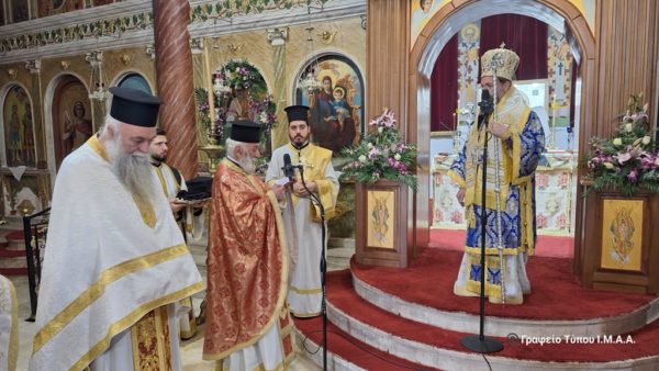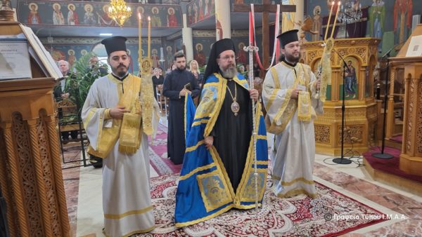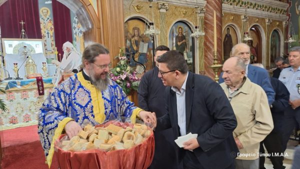 Ευχαρίστησε τους Ιερείς που συλλειτούργησαν μαζί του, τον πρώην Εφημέριο της Ενορίας π. Βασίλειο Φέσσα και τον νυν Εφημέριο, π. Εφραίμ Μπισμπίκη, τον οποίο επαίνεσε για το αθόρυβο και ταπεινό έργο του, καθώς και όλα τα στελέχη της Ενορίας και ιδιαιτέρως την χορωδία του Συλλόγου Ιεροψαλτών, που απέδωσε θαυμάσια τους ύμνους της εορτής.