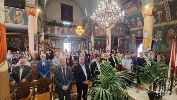 Ευχαρίστησε τον Δήμαρχο κ. Ιωάννη Τριανταφυλλάκη και τον Αντιπεριφερειάρχη κ. Νικόλαο Κατσακιώρη, καθώς και όλους τους εκπροσώπους των τοπικών δημοτικών και αστυνομικών αρχών για την συμμετοχή του στην Θεία Λειτουργία.