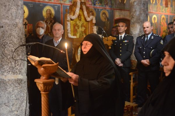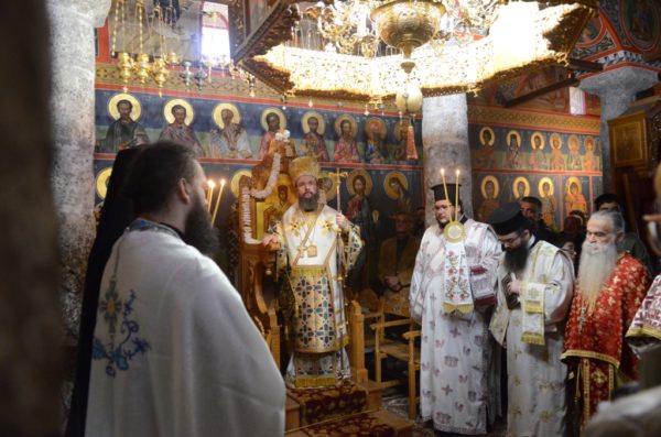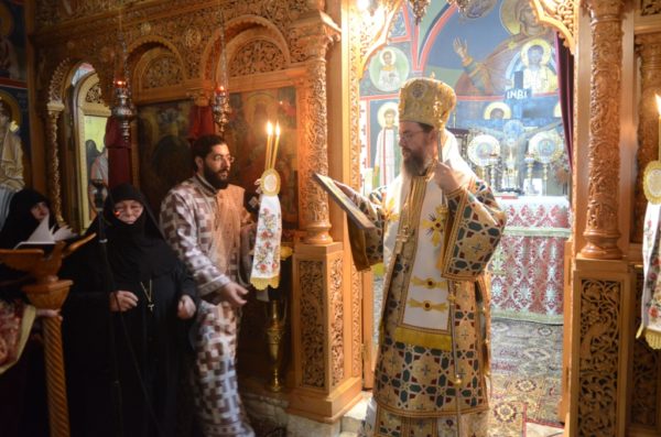 Η Ηγουμένη Γερόντισσα Μακρίνα και η Αδελφότητα επεφύλαξαν θέρμη υποδοχή στον Σεβασμιώτατο, ο οποίος χοροστάτησε στην ακολουθία του Όρθρου και προεξήρχε στην Αρχιερατική Θεία Λειτουργία.