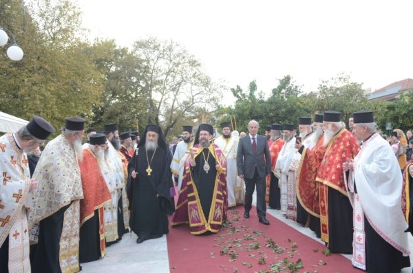 Ο Μητροπολίτης Σάμου κ. Ευσέβιος, για μία ακόμη φορά συνεχάρη τον Ποιμενάρχη για την επάξια εκλογή του, αναφέρθηκε στα πολλά τάλαντα και χαρίσματα με τα οποία τον προίκισε ο Θεός και του ευχήθηκε μία μακρά και αγλαόκαρπη ποιμαντορία. Σε ανάμνηση δε της σημερινής Θείας Λειτουργίας του προσέφερε την αρχιερατική μίτρα που φορούσε.