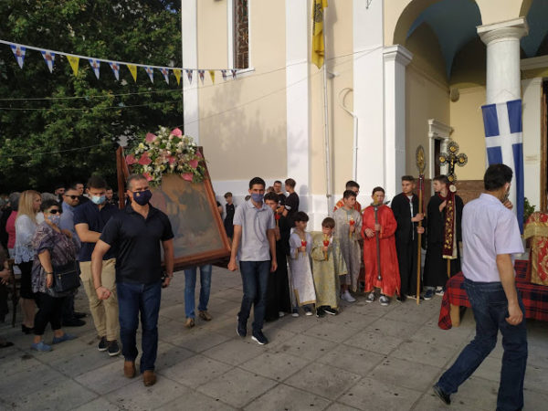 Λόγω των περιορισμών που έχουν επιβληθεί, εξαιτίας της πανδημίας του κορωνοϊού, φέτος η καθιερωμένη Λιτάνευση της Ιεράς Εικόνος πραγματοποιήθηκε πέριξ του Ιερού Ναού.