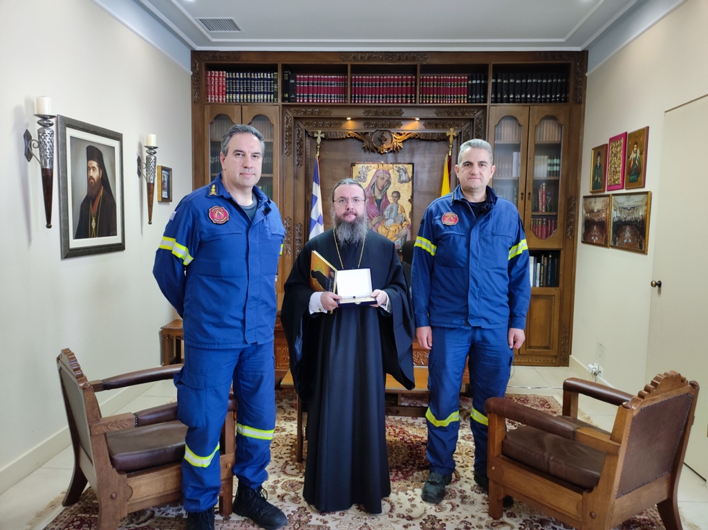 Τον Διοικητή ΔΙ.Π.Υ.Ν. Αιτωλοακαρνανίας Πύραρχο Χαραλάμπη Παλουκτσόγλου, συνοδευόμενο από τον Διοικητή Π.Υ. Μεσολογγίου Αντιπύραρχο Παναγιώτη Στούμπο δέχθηκε χθες ο Σεβασμιώτατος Μητροπολίτης Αιτωλίας και Ακαρνανίας κ. Δαμασκηνός στα Γραφεία της Ιεράς Μητρόπολης, στην Ιερά Πόλη Μεσολογγίου.