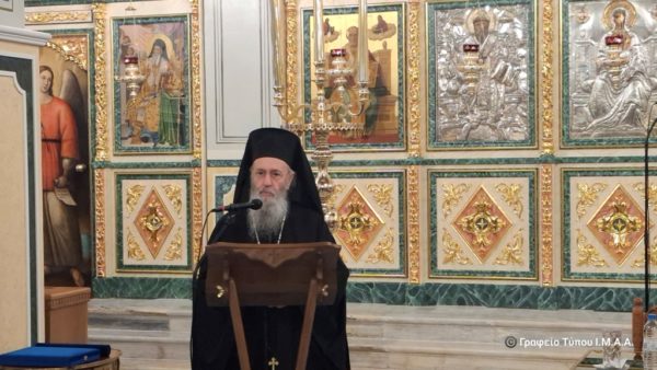 Σας ευχαριστούμε θερμά, διότι παρ όλο το βεβαρυμμένο πρόγραμμά σας, ήρθατε σήμερα στην Ιερά Πόλη του Μεσολογγίου για να ανταποκριθείτε στην ταπεινή μας πρόσκληση και να μας μιλήσετε με θέμα: «Φιλοθεΐα και Φιλοπατρία – Από την Αγάπη στον Θεό, στην αγάπη για την Πατρίδα», ανέφερε μεταξύ άλλων ο Μητροπολίτης Αιτωλίας και Ακαρνανίας.