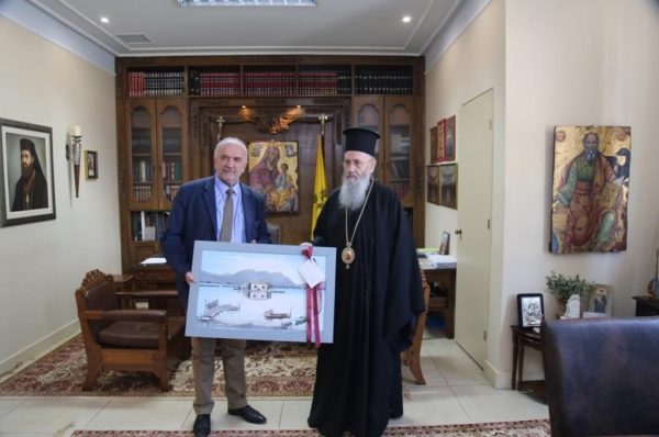 Νωρίτερα ο Σεβασμιώτατος Μητροπολίτης κ. Ιερόθεος είχε ιδιαίτερη συνάντηση με τον Δήμαρχο της Ιεράς Πόλεως Μεσολογγίου, ο οποίος του προσέφερε πίνακα ζωγραφικής με ένα τοπίο από την Λιμνοθάλασσα εις ανάμνηση της εντεκάμηνης Τοποτηρητείας του.