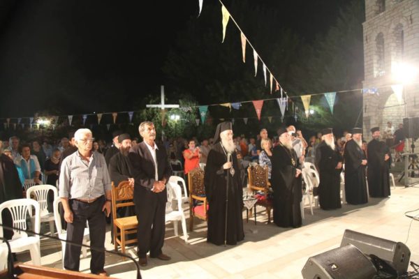 Ακολούθησε εορταστικό πρόγραμμα με βυζαντινούς ύμνους και παραδοσιακά τραγούδια από τη χορωδία μαθητών και αποφοίτων της Σχολής Βυζαντινής Μουσικής και τη χορωδία γυναικών του Ιερού Ναού Κοιμήσεως της Θεοτόκου Θέρμου, με χοράρχη τον κ. Αλέξιο Σιάχο.
