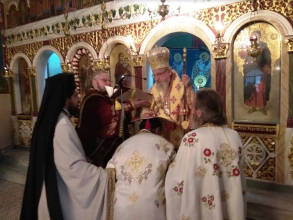 Στο τέλος της Θείας Λειτουργίας, ο Σεβασμιώτατος Μητροπολίτης κ.Κοσμάς, απένειμε το οφφίκιο του οικονόμου στον εφημέριο της ενορίας π. Αχιλλέα Παναγιωτόπουλο τιμώντας τον για την ταπείνωση, την συνέπεια, την υπακοή του και την πολυετή πνευματική προσφορά του στην ενορία.