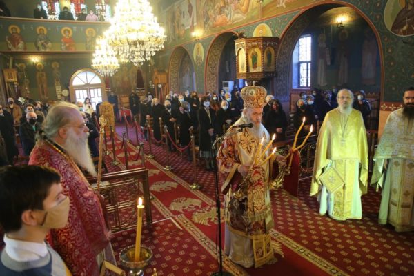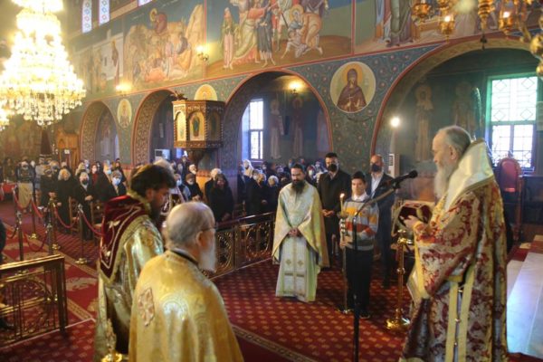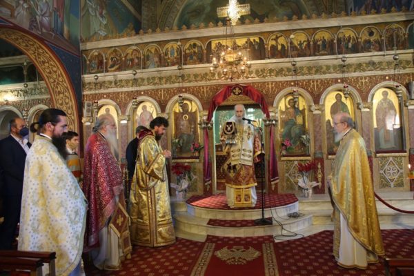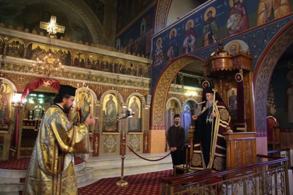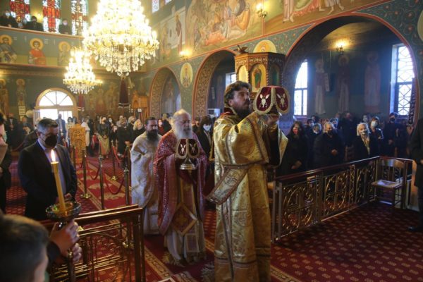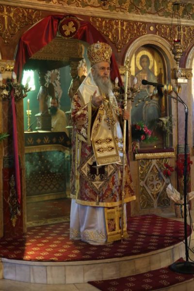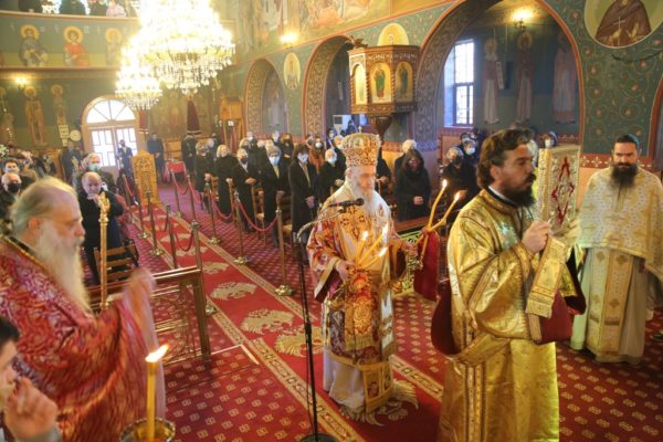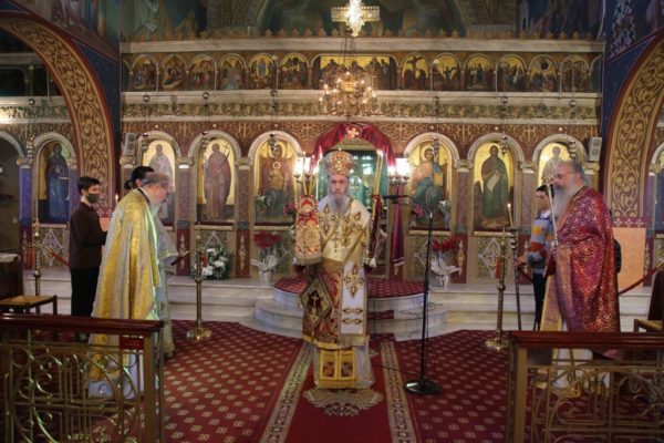 Στην ακολουθία του Όρθρου και την πανηγυρική αρχιερατική Θεία Λειτουργία προεξήρχε ο Σεβασμιώτατος Μητροπολίτης Ναυπάκτου και Αγίου Βλασίου και Τοποτηρητής της Ιεράς Μητροπόλεως Αιτωλίας και Ακαρνανίας κ. Ιερόθεος.