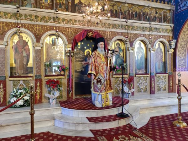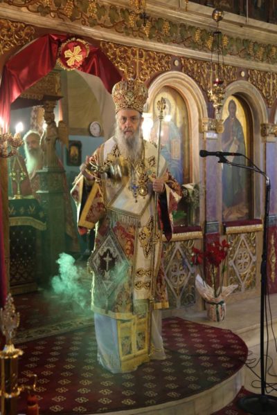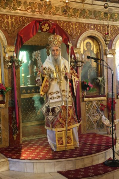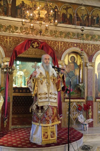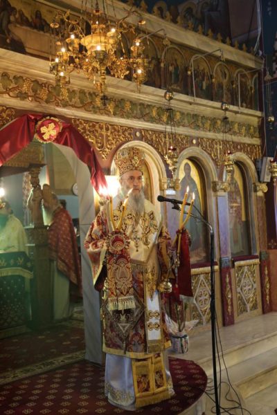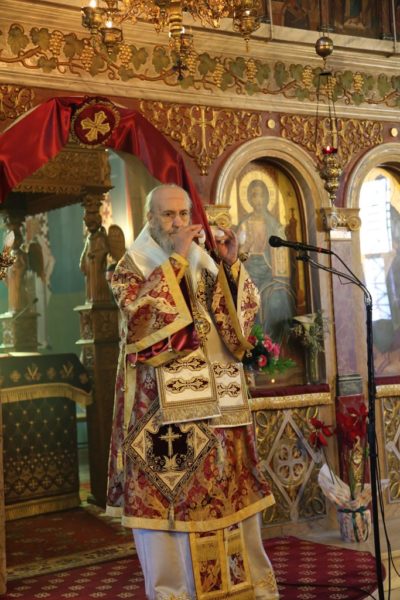 Ο Σεβασμιώτατος στο κήρυγμά του ανέφερε ότι ο άγιος Χαράλαμπος ήταν μιμητής του Χριστού σε όλη την ζωή του και στο μαρτύριό του. Ήταν, όπως και όλοι οι άγιοι, «ένα εικονογραφημένο Ευαγγέλιο». Δεν μπορεί κανείς να είναι Χριστιανός όταν δεν μιμείται, όσον είναι δυνατόν, τον Χριστό.