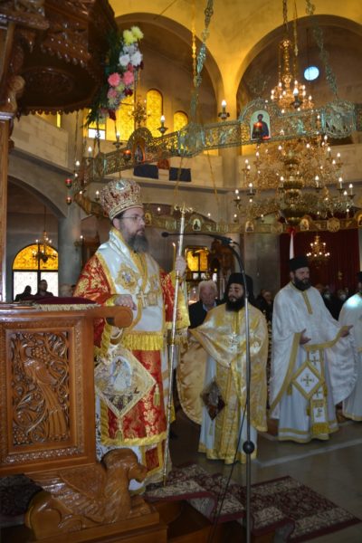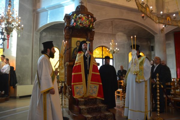 Ο Σεβασμιώτατος κατά την ομιλία του αναφέρθηκε στο θαύμα της θεραπείας του παραλυτικού λέγοντας ότι σε αυτό διακρίνουμε την συνάντηση του Χριστού με τον άνθρωπο, του Δημιουργού με το δημιούργημά Του. Ανάμεσα σε ένα πλήθος κουρασμένων, πονεμένων και ταλαιπωρημένων ανθρώπων ο Χριστός διακρίνει τον παραλυτικό που για 38 ολόκληρα χρόνια με υπομονή παραμένει στον ίδιο τόπο και αναμένει να λάβει τη θεραπεία. Τρεις εμπειρίες κυριαρχούν μέσα στην καρδιά του, η εμπειρία της αμαρτίας, του πόνου και της υπομονής. Και έρχεται ο Χριστός και στρέφει τα μάτια Τού μόνο σε εκείνον και του προσφέρει την αποκατάσταση της υγείας του και τη σωτηρία.