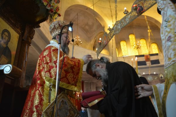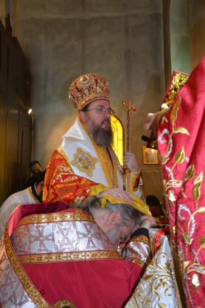 Κατά τη διάρκεια της Θείας Λειτουργίας χειροτόνησε στον βαθμό του διακόνου τον μοναχό Θεολόγο Κουρμπάνη, τον οποίο εισήγαγε στο μοναχικό πολίτευμα, δια της Ακολουθίας της Ρασοευχής, το απόγευμα του Σαββάτου 6 Μαΐου 2023, στην Ιερά Μονή Εισοδίων της Θεοτόκου Μυρτιάς, μετονομάσας αυτόν από Ιωάννη σε Θεολόγο.