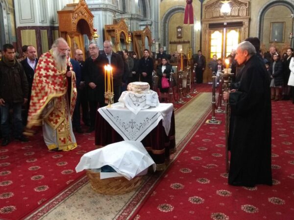 Στη συνέχεια, στην αίθουσα του πνευματικού κέντρου του Ναού, πραγματοποιήθηκε η κοπή της βασιλόπιτας της Ενώσεως Θεολόγων, την οποία ευλόγησε ο Σεβασμιώτατος Ποιμενάρχης μας, απευθύνοντας παράλληλα τις ευχές του για τη νέα χρονιά και την εορτή των Τριών Ιεραρχών. Επίκαιρη εισήγηση απηύθυνε ο ελλογιμώτατος κ. Γεώργιος Σπανός.
