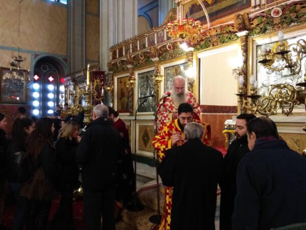 Το πρωί της Πέμπτης 30 Ιανουαρίου 2020, ο Σεβασμιώτατος Μητροπολίτης Αιτωλίας και Ακαρνανίας, κ. Κοσμάς, χοροστάτησε στην Θεία Λειτουργία που τελέσθηκε στον Ιερό Μητροπολιτικό Ναό Αγίου Σπυρίδωνος Ιεράς Πόλεως Μεσολογγίου, όπου εκκλησιάστηκαν το 1ο Δημοτικό, το 1ο Γυμνάσιο και το 1ο Λύκειο της Ιεράς Πόλεως. Μεταξύ των μαθητών και των καθηγητών εκκλησιάστηκαν οι προϊστάμενοι της Α/θμιας και της Β/θμιας Εκπαιδεύσεως κ. Χρήστος Κολοβός και κ. Χρήστος Καζαντζής. Τον πανηγυρικό της ημέρας εκφώνησε ο φιλόλογος κ. Βασίλειος Πλαστήρας.