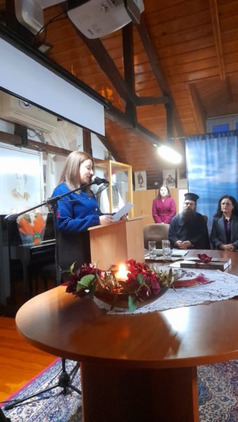 Στο σημείο αυτό, να ευχαριστήσω την πρωτεργάτρια και την ψυχή της Βυρωνικής Εταιρίας της Ιεράς Πόλεως του Μεσολογγίου, την αξιότιμη κυρία Ρόζα Φλώρου. Η προσπάθεια που επιτελεί, για την ανάδειξη της προσωπικότητας του Βύρωνα αλλά και εν γένει της πόλεως του Μεσολογγίου, τόσο στην Ελλάδα όσο και στο εξωτερικό, είναι αξιέπαινη. Εκφράζω εγκάρδια τις πατρικές μου ευχές για υγεία και μακροημέρευση, ώστε να συνεχίσει να υπηρετεί με τις δράσεις της, με τον ίδιο ζήλο την τοπική μας κοινωνία, για την πρόοδο και την ανάπτυξη αυτού του ευλογημένου τόπου».