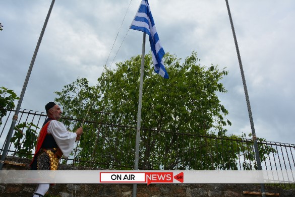 Εκεί, προεξάρχοντος του καθηγουμένου της Μονής αρχιμανδρίτου π. Ιωσήφ Ζωγράφου και της συνοδείας του, τελέστηκε επιμνημόσυνη δέηση και με μια λιτή και σεμνή τελετή, έντονα όμως συναισθηματικά φορτισμένη, υψώθηκε η σημαία στον ιστό της Ιεράς Μονής με την Φιλαρμονική «Δ. Σολωμός» να αποδίδει τιμές.