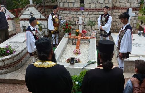 Εκεί, προεξάρχοντος του καθηγουμένου της Μονής αρχιμανδρίτου π. Ιωσήφ Ζωγράφου και της συνοδείας του, τελέστηκε επιμνημόσυνη δέηση και με μια λιτή και σεμνή τελετή, έντονα όμως συναισθηματικά φορτισμένη, υψώθηκε η σημαία στον ιστό της Ιεράς Μονής με την Φιλαρμονική «Δ. Σολωμός» να αποδίδει τιμές.