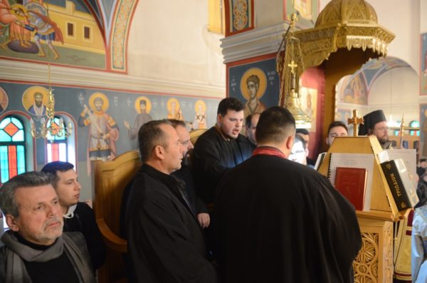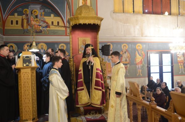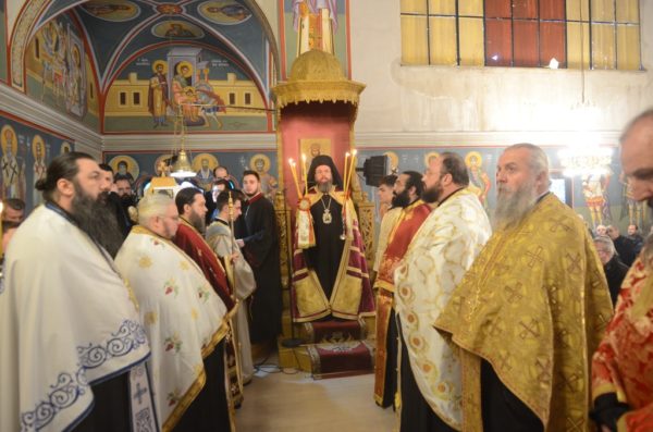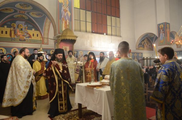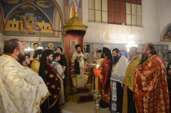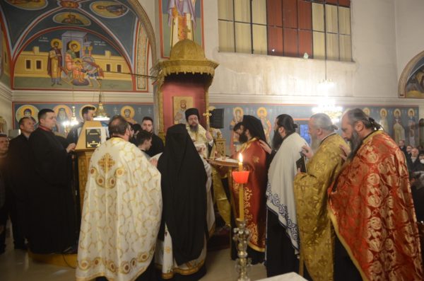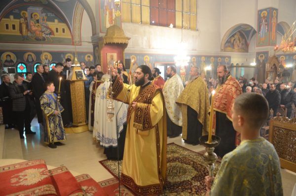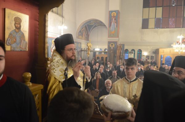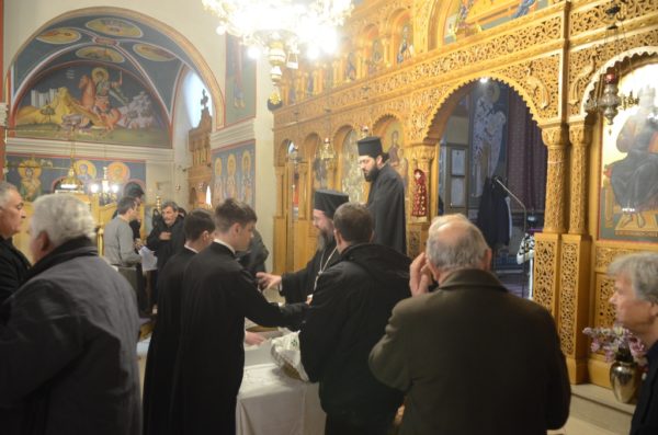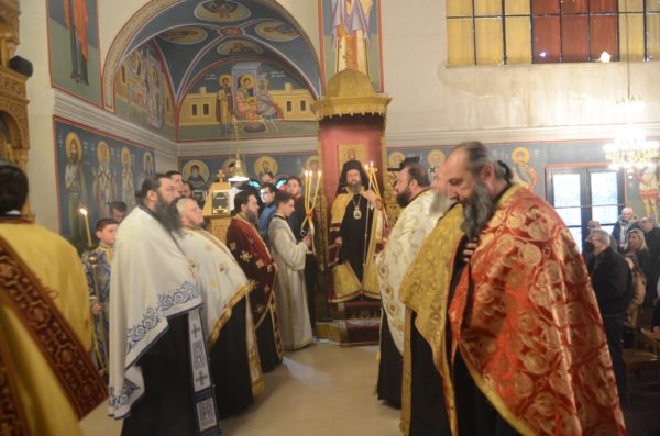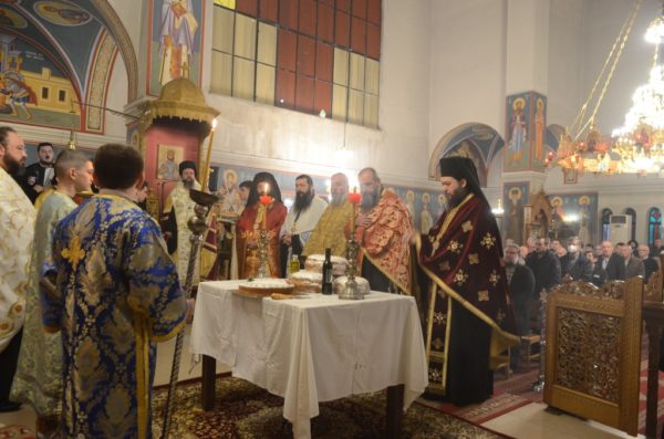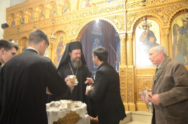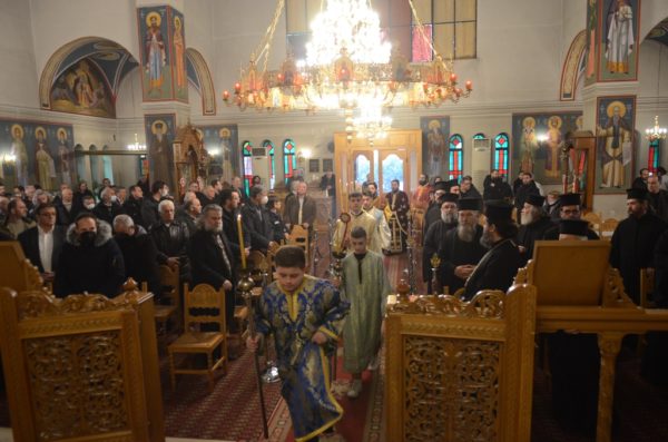 Αρχικά τελέσθηκε η ακολουθία του Εσπερινού, χοροστατούντος του Σεβασμιώτατου Μητροπολίτη Αιτωλίας και Ακαρνανίας κ. Δαμασκηνού, ο οποίος ευλόγησε την αρτοκλασία που προσέφερε ο Σύλλογος Ιεροψαλτών, ευχόμενος υπέρ υγείας αυτών και των οικογενειών τους. Επίσης ευλόγησε την βασιλόπιττα του Συλλόγου Ιεροψαλτών «Άνθιμος ο Αρχιδιάκονος» και μίλησε στους Ιεροψάλτες που συμμετείχαν στην ακολουθία.