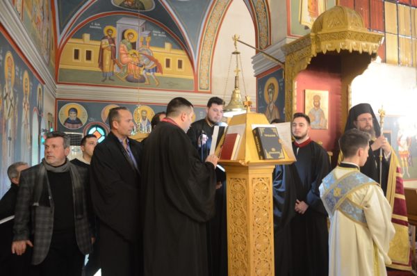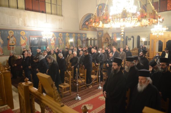 Κατά την ακολουθία του Εσπερινού ο Σεβασμιώτατος κ. Δαμασκηνός απένειμε το οφφίκιο του πρωτοπρεσβυτέρου στον Προϊστάμενο του Ναού π. Απόστολο Μπλέτσα, προτρέποντάς τον να σηκώνει με πίστη τον σταυρό της καλής διακονίας των χριστιανών και να μεριμνήσει για τον εξωραϊσμό και την ολοκλήρωση της ανακαινίσεως του μεγαλοπρεπούς και επιβλητικού Ιερού Ναού του Αγίου Δημητρίου.