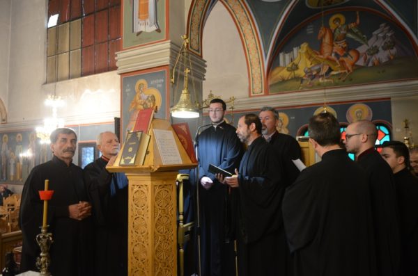 Τα αναλόγια πλαισίωσαν χοροί Ιεροψαλτών, υπό την διεύθυνση του κ. Ανδρέα Φούκα και του κ. Νικολάου Παππά, οι οποίοι απέδωσαν εξαιρετικά τους ύμνους της ημέρας.