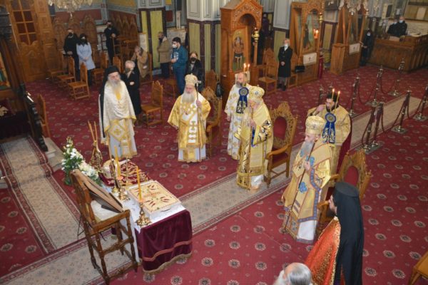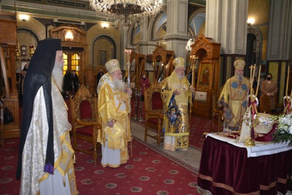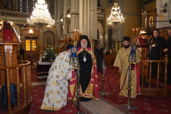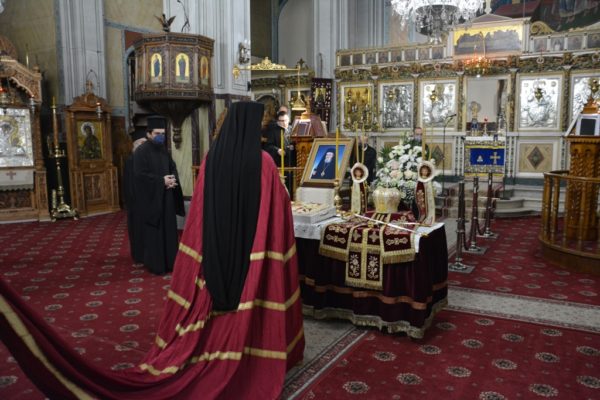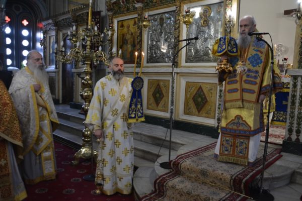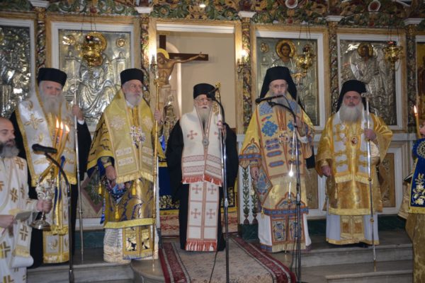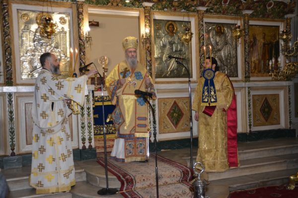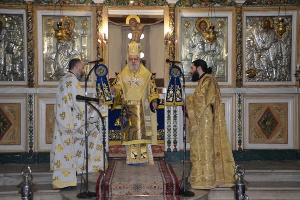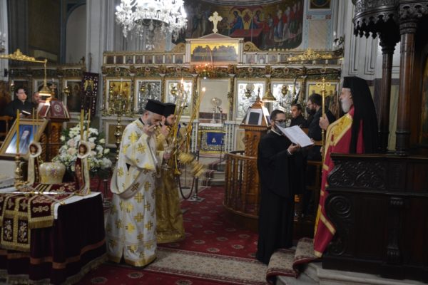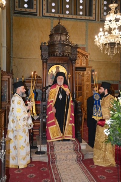 Στον Όρθρο και την Θεία Λειτουργία προεξήρχε ο Σεβασμιώτατος Μητροπολίτης Σύρου, Τήνου, Άνδρου, Κέας, Μύλου και Μυκόνου κ. Δωρόθεος και συλλειτούργησαν ο Σεβασμιώτατος Μητροπολίτης Κινσάσας κ. Θεοδόσιος (Πατριαρχείο Αλεξανδρείας) και ο Σεβασμιώτατος Τοποτηρητής της Ιεράς Μητροπόλεως Αιτωλίας και Ακαρνανίας, Μητροπολίτης Ναυπάκτου και Αγίου Βλασίου κ. Ιερόθεος. Συμπροσευχόμενοι συμμετείχαν οι Μητροπολίτες Δρυϊνουπόλεως, Πωγωνιανής και Κονίτσης κ. Ανδρέας και Κυθήρων και Αντικυθήρων κ. Σεραφείμ.