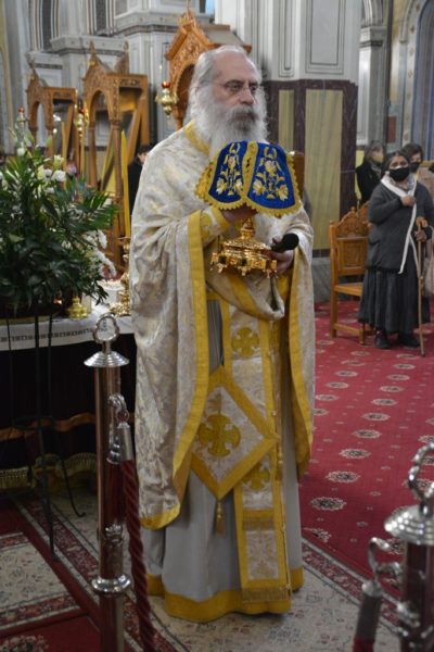 Ο Σεβασμιώτατος αναφέρθηκε, επίσης, στην μορφή του μεγάλου Φωτίου, Πατριάρχου Κωνσταντινουπόλεως που εορτάζει σήμερα και ανήκει στους μεγάλους πατέρες και επισκόπους της Εκκλησίας μας, οι οποίοι έδειξαν το δρόμο και άφησαν τα χνάρια για το πώς πρέπει να βαδίζουν όσοι έλαβαν το υψηλό υπούργημα της αρχιερωσύνης. Οι μεγάλοι αυτοί πατέρες με τη ζωή τους μας διδάσκουν δύο πράγματα. Πρώτον, αυτήν την ακλόνητη πίστη που είχε και η γυναίκα του Ευαγγελίου και δεύτερον πώς με την ταπείνωση τους κατάφεραν να γίνουν πολύ μεγάλοι.