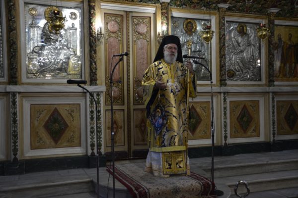 Τον θείο λόγο κήρυξε ο Μητροπολίτης Σύρου κ. Δωρόθεος, ο οποίος, αφού ευχαρίστησε τον Ποιμενάρχη και Τοποτηρητή της Ιεράς Μητροπόλεως, τον «λόγιο, σοφό και βαθυνούστατο θεολόγο της Εκκλησίας» –όπως τον χαρακτήρισε– Μητροπολίτη Ναυπάκτου για την ευγένειά του, να του επιτρέψει να προεξάρχει της Θείας Λειτουργίας και να κηρύξει τον θείο λόγο, αναφέρθηκε στο ευαγγελικό ανάγνωσμα της ημέρας. Σύμφωνα με τον Ευαγγελιστή Ματθαίο ο Χριστός φέρεται να μιλά απότομα και να προσβάλει την Χαναναία γυναίκα και αυτό το κάνει για να αποκαλύψει το μεγαλείο της ψυχής της, την απόλυτη ταπείνωσή της και την αληθινή πίστη της που την έκανε να αυτοπαραδοθεί, άνευ όρων, στον Θεό.