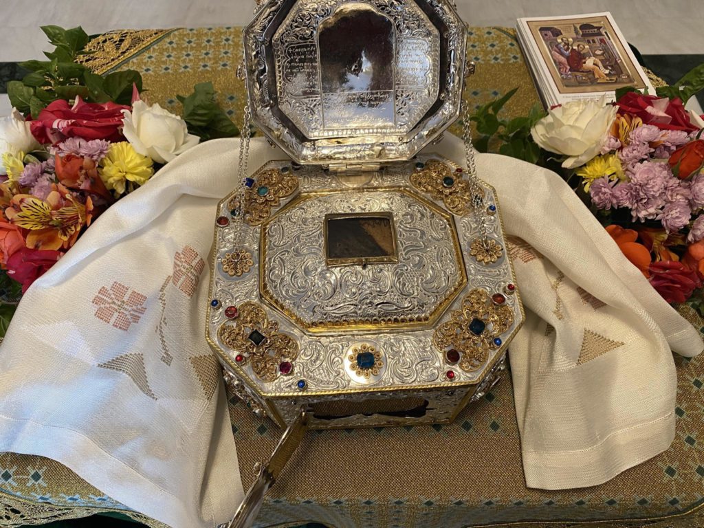 Το πανίερο αυτό θησαύρισμα της Εκκλησίας θα κομίσει ο Πανοσιολογιώτατος Καθηγούμενος της Ιεράς Μεγίστης Μονής Βατοπαιδίου, Γέροντας Εφραίμ με τη συνοδεία Πατέρων της Ιεράς Μονής.