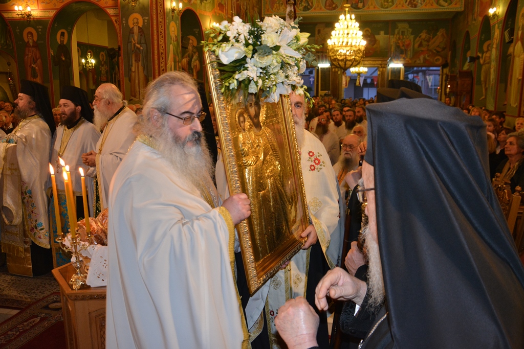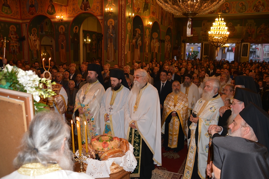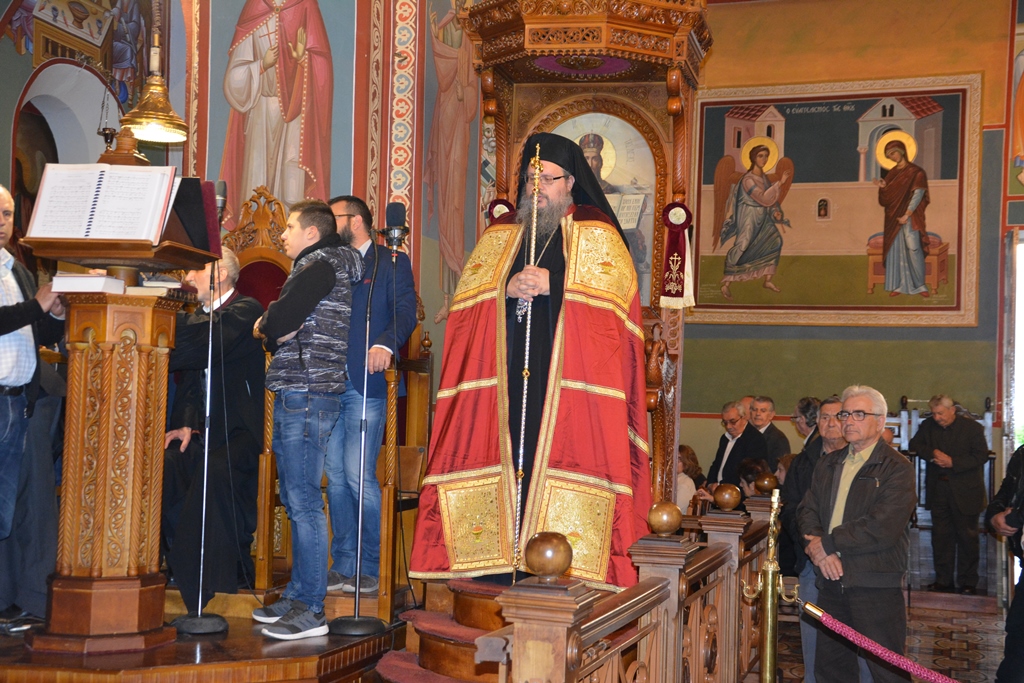 Στον Εσπερινό, που τελέσθηκε στον νέο Ιερό Ναό του Αγίου, χοροστάτησε ο Σεβασμιώτατος Μητροπολίτης Λαρίσης και Τυρνάβου κ. Ιερώνυμος, ενώ συγχοροστάτησαν οι Σεβασμιώτατοι Μητροπολίτες Σιδηροκάστρου κ. Μακάριος, Φιλίππων, Νεαπόλεως και Θάσου κ. Στέφανος, Κανάγκας κ. Θεοδόσιος και ο Ποιμενάρχης μας, Αιτωλίας και Ακαρνανίας κ. Κοσμάς.
