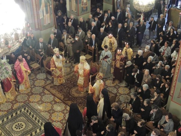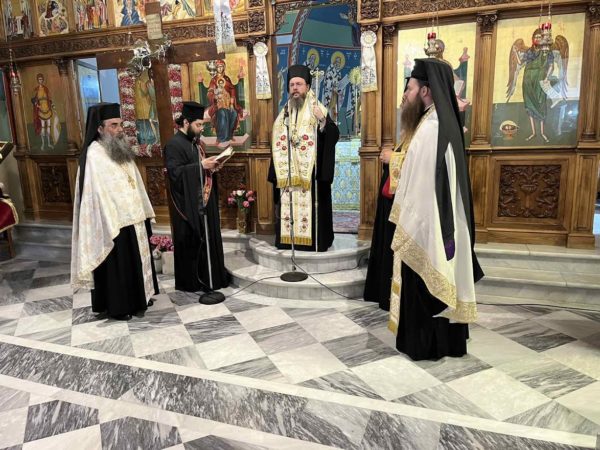 Ευχαρίστησε τους Εφημερίους του Ναού, τα μέλη του Εκκλησιαστικού Συμβουλίου, τις κυρίες της Φιλοπτώχου Διακονίας και όλα τα στελέχη της Ενορίας για την προετοιμασία της πανηγύρεως. Επιβραβεύοντας την μέχρι σήμερα εντατική και μεθοδική εργασία και προσπάθεια του νέου Προϊσταμένου του Ναού, του π. Ιωάννη Γκιάφη του απένειμε το οφφίκιο του πρωτοπρεσβυτέρου προτρέποντάς τον με την ίδια ταπείνωση και τον ίδιο ζήλο να συνεχίσει την διακονία του.