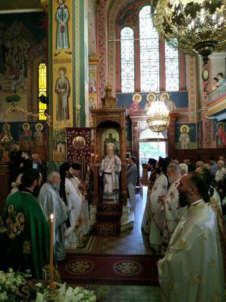 Την Δευτέρα του Αγίου Πνεύματος το πρωί, τελέσθηκε η Ακολουθία του Όρθρου και στην συνέχεια η Πανηγυρική Αρχιερατική Θεία Λειτουργία ιερουργούντος και ομιλούντος του Σεβασμιωτάτου Μητροπολίτου Αιτωλίας και Ακαρνανίας κ. Κοσμά, ο οποίος μεταξύ άλλων σημείωσε: