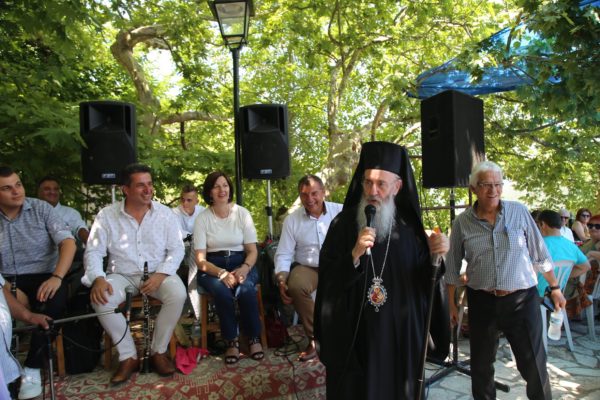 Μετά την Θεία Λειτουργία, στην κεντρική πλατεία του χωριού, έλαβε χώρα η επίσημη υποδοχή του Αμερικανού Πρέσβεως στην Ελλάδα κ. Τζόρτζ Τσούνη και μίλησαν σχετικά ο Δήμαρχος Θέρμου, ο Σεβασμιώτατος, ο Βουλευτής Αιτωλοακαρνανίας κ. Δημήτρης Κωνσταντόπουλος, ο κ. Αθανάσιος Παπαθανάσης, ο Πρόεδρος των εν Αμερική Διπλατανιωτών και ο κ. Πρέσβης.