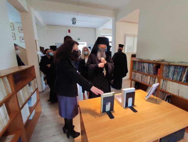 Μετά την Θεία Λειτουργία ο Σεβασμιώτατος, συνοδευόμενος από τον Δήμαρχο Αμφιλοχίας, επισκέφθηκε την Βιβλιοθήκη του Δήμου και ξεναγήθηκε στους χώρους της. Εξέφρασε τον θαυμασμό του για το έργο που επιτελείται και συνεχάρη τους υπευθύνους για την προσπάθεια που καταβάλλουν και το έργο που κάνουν.
