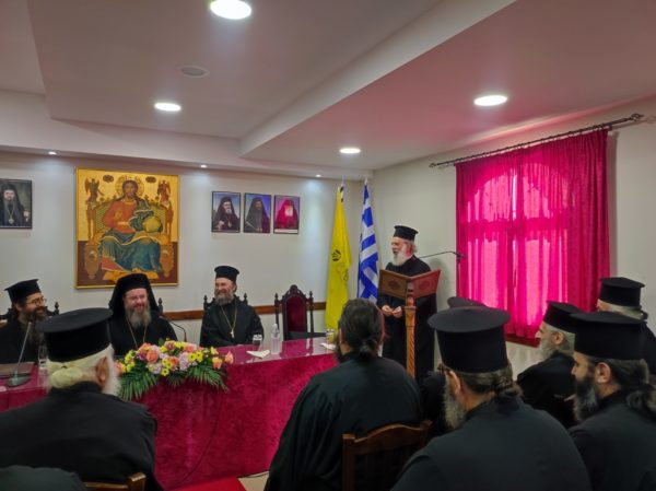 Παρουσιάζοντας τους εισηγητές, ανέφερε: «επιτρέψτε μου να εκφράσω την μεγάλη μου χαρά, γιατί σήμερα έχουμε κοντά μας τρεις κορυφαίους Κληρικούς από την Θεσσαλονίκη και από τα πανεπιστημιακά ιδρύματα της Συμπρωτεύουσας και ιδίως την Θεολογική Σχολή. Και τους τρεις τους περιβάλλουμε με πολλή αγάπη και πολύ σεβασμό και αναγνωρίζουμε το τεράστιο έργο που έχουν επιτελέσει, την μεγάλη εμπειρία που έχουν αποκομίσει, την αγάπη τους για την αγία μας Εκκλησία και την αγωνία τους για την συστηματική επιμόρφωση των Ιερέων».