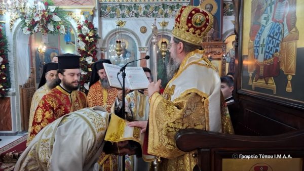 Ολοκληρώνοντας, ο Σεβασμιώτατος τόνισε, ότι «έχουμε λοιπόν την αίσθηση, την ελπίδα και την βεβαιότητα, ότι όπως προσέφερες στο παρελθόν, έτσι και περισσότερο θα προσφέρεις από εδώ και πέρα. Ευχόμαστε όλη η διακονία σου να έχει την απλότητα των ποιμένων. Να λάμπει, όπως το χρυσάφι τον μάγων. Να ευωδιάζει όπως το λιβάνι των μάγων. Και να περιέχει την σμύρνα της θυσίας. Στον δρόμο σου προς την ιερωσύνη, να σε καθοδηγεί ο αστέρας της εκκλησιαστικής παράδοσης και ιστορίας.