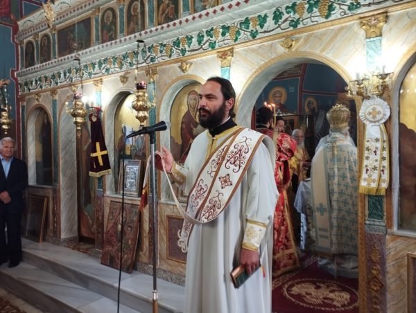 Ο Μητροπολίτης κ. Δαμασκηνός, κατά την ομιλία του συνεχάρη και ευχαρίστησε τον μέχρι σήμερα Εφημέριο της Ενορίας π. Ηλία Βανάκα για την πολυετή διακονία του και γιατί ο ίδιος πρότεινε τον διάδοχό του στο πρόσωπο του νέου Κληρικού, λέγοντας ότι: «στην επίγεια διαδρομή μιας Ενορίας αποτελεί σταθμό, η ημέρα εκείνη που χειροτονείται ο Εφημέριος της, ο πνευματικός της πατέρας, ο λειτουργός των μυστηρίων του Χριστού, διότι ο Εφημέριος σφραγίζει με την παρουσία του τον τόπο στον οποίο καλείται να διακονήσει. Είναι ένα πρόσωπο που η προσφορά του διατηρείται ανεξίτηλη στο διάβα της ιστορίας, αφού αναλαμβάνει ένα έργο ιερό, να μορφώσει στις καρδιές των ανθρώπων τον Ιησού Χριστό και να συνδέσει τη ζωή του ποιμνίου του με τη ζωή της Εκκλησίας».