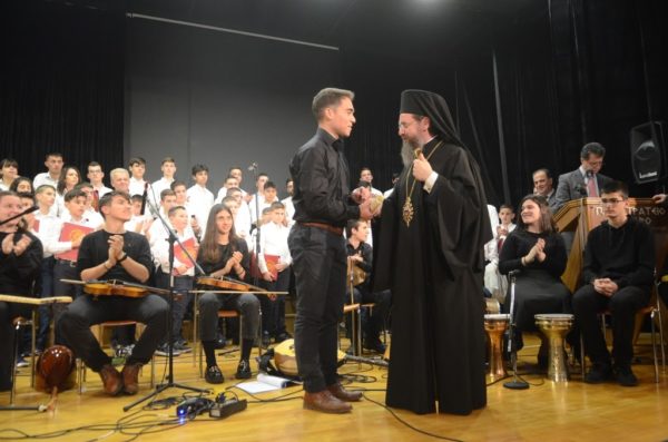 Ο Σεβασμιώτατος Μητροπολίτης Αιτωλίας και Ακαρνανίας κ. Δαμασκηνός ευχαρίστησε και συνεχάρη θερμά τους σπουδαστές και τους καθηγητές για την όμορφη και επιτυχημένη εκδήλωση. Εξέφρασε τη χαρά και τη συγκίνησή του, γιατί η Σχολή Βυζαντινής Μουσικής έχει τόσους πολλούς μαθητές και συνεχάρη τους γονείς που εμπιστεύονται τα παιδιά τους στη Σχολή, τονίζοντας ότι δεν διδάσκονται μονάχα την τεχνική απόδοσης των ύμνων, αλλά το ύφος και το ήθος της ορθοδόξου θεολογίας, μέσα από την βυζαντινή υμνογραφία.
