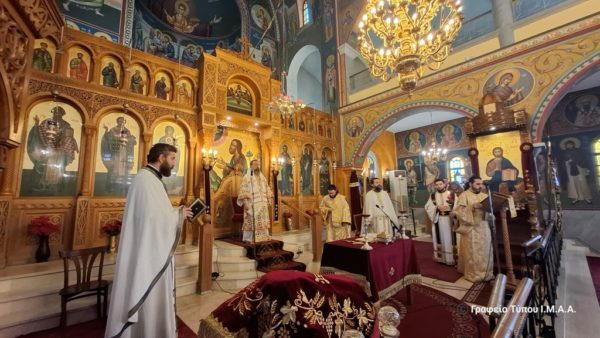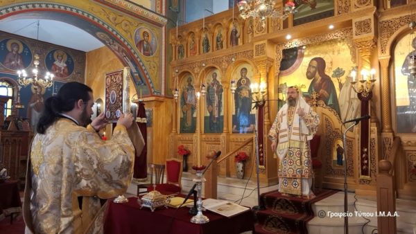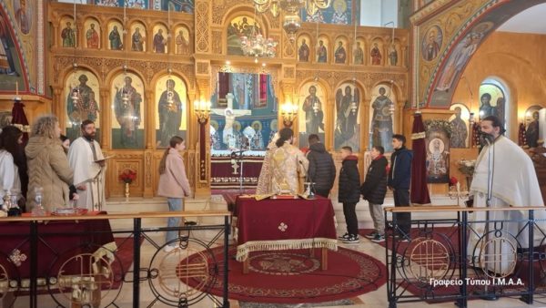Κατά την Θεία Λειτουργία που τελέστηκε στον σολέα του Ναού, ο Σεβασμιώτατος επεξηγούσε με απλά λόγια τα τελούμενα, τα βασικά σημεία και τους συμβολισμούς του Μυστηρίου της Θείας Ευχαριστίας, με σκοπό οι μαθητές να μπορέσουν να συμμετάσχουν καλύτερα και να βιώσουν το ιερό Μυστήριο.
