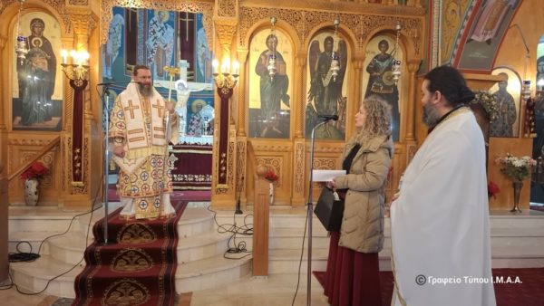 Πριν την απόλυση της Θείας Λειτουργίας η Διευθύντρια του Γυμνασίου κα Αγλαΐα Γεωργακοπούλου ευχαρίστησε τον Σεβασμιώτατο λέγοντας τα εξής: