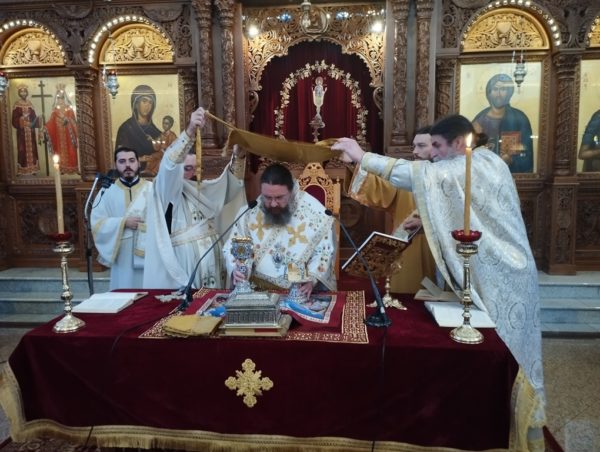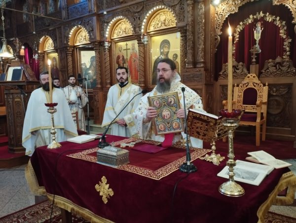 Κατά την διάρκεια της Θείας Λειτουργίας, που τελέστηκε στον σολέα του Ναού, ο Σεβασμιώτατος επεξηγούσε τα τελούμενα και ανέλυσε τα βασικά σημεία και τους συμβολισμούς του Ιερού Μυστηρίου για να μπορούν οι μαθητές να κατανοούν και να συμμετέχουν σε αυτό.