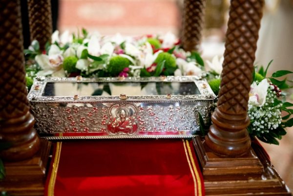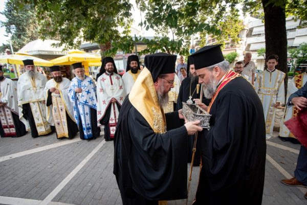 Ο Σεβασμιώτατος ευχαρίστησε επίσης τον Αιδεσιμολογιώτατο Πρωτοπρεσβύτερο Γεώργιο Μπογδάνο και τον κ. Σπυρίδωνα Αγάθο, οι οποίοι μετέφεραν το Ιερό Λείψανο εκ μέρους του Ιερού Προσκυνήματος και τον Αρχιμ. Νεκτάριο Τριάντη, Προϊστάμενο του Ιερού Ναού της Αγίας Τριάδος και τους συνεργάτες του για την ετοιμασία της ιεράς Πανηγύρεως.